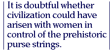 The sexes have not changed much since the Neolithic age, even if our ideas about "rights" have. Even today one can find men with six-figure salaries who cannot get out of debt. They do not live beyond their means; their wives do. In Schopenhauer's words, "Women think men are intended to earn money so that they may spend it." One of the traditional goals of rearing daughters has been precisely to disabuse them of this "natural" feminine way of thinking.