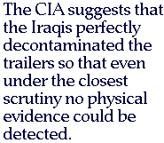 New revelations of WMD finds continue to pop up, receive publicity for a time, and then subside as they are abandoned by officialdom. In late June a former Iraqi nuclear scientist handed over to U.S. officials the parts of a gas centrifuge and documents related to Iraq's nuclear program that he had buried under a rosebush in his backyard in 1991 on the orders of Saddam's government. He said he was told to safeguard the parts and documents until sanctions against Iraq were lifted. [82] Of course, far from reinforcing the administration's case, the scientist's account strongly suggests that there were no preparations underway recently for an Iraqi nuclear weapons program. [83] If Iraq were going to reconstitute her nuclear program, as the Bush administration had claimed, the parts and instructions should have been dug up by now. That Saddam's government was not perfectly honest does not in the least show that it was developing a nuclear program that would be an immediate threat to the United States.