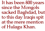 First, feelings of patriotic duty are working on the Iraqi psyche much as they would on the American mind had some foreign power occupied U.S. soil. There can be no doubt that this provides a powerful inducement for men to enlist in the insurgency, an inducement intensified by the religious, cultural, and linguistic differences separating the Iraqis from their American occupiers. It has been 800 years since the Mongols sacked Baghdad, but to this day Iraqis spit at the mere mention of Hulagu Khan.