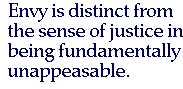 Envy, however, is distinct from the sense of justice in being fundamentally unappeasable.