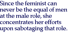 feminist political power is to make it impossible for men to "do their thing" (fulfill their role). For example,