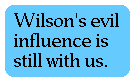 Wilson wound up crazy and pathetic, incapacitated by stroke, with his second wife Edith (herself a real horror) acting as president. Karp thinks that Wilson actually went mad, and did so as the result of guilt and disappointment over getting us into the war and then not achieving his personal goal. I can't decide whether Wilson actually had anything resembling a conscience; maybe it's more likely that his personal hell was constructed from humiliation rather than guilt. In any case, his evil influence is still with us, and not just in the incomprehensible suffering his actions helped cause throughout this bloodiest of centuries. Today, when an American president wants to draw attention away from domestic problems or his own inadequacies, he has only to turn to Wilson's methods to get us into a nice, tidy little war. Witness Georgie Bush's demonizing of Manuel Noriega and "Sodom" Hussein.
