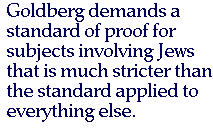 There is, after all, a reason for the taboo surrounding talk of Jewish power and treachery. Tales of Jewish groups using money and secret influence to twist politics for their own, unpatriotic ends are a hallmark of reaction, spouted by everyone from the Nazis to Father Charles Coughlin to David Duke. Walt and Mearsheimer are not anti-Semites, or aligned with anti-Semitic forces. They seem, however, somewhat oblivious as to why the issue they've taken on is so horribly sensitive, and they make little effort to address the causes of the taboo they're trying to dislodge.Worse, Goldberg suggests that the Israel lobby is to a degree justified in sabotaging discussion of this topic by means of lies, slander, and other nefarious tactics: "Before a rational discussion can proceed, some of that emotion has to be defused. Instead, it's been stoked." According to Goldberg, then, the point is not to present the truth as well and as clearly as it can be determined but to present it in a way that will not irritate organized Jewry.