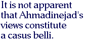But doesn't Ahmadinejad say that Israel "must be wiped off the map"? [15] The Western mainstream media imply that such wiping means a nuclear attack and the physical extermination of the Jewish people in Israel. But it means nothing of the sort. In fact, the translation that uses "wiped off the map" leaves the wrong impression. The translation could instead use the word "vanish" and it refers to the regime. [16] One could interpret this as a call for "regime change."