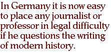 Since 1994, Germany, Canada, and Australia have strengthened their laws against dissenting views, particularly against historical revisionists and nationalists. Several hundred German citizens, including a number of high-profile scholars, have been accused of inciting racial hatred or denying the Jewish Holocaust, on the basis of the strange legal neologism contained in Article 130 of the German Criminal Code Volksverhetzung, a linguistic barbarism literally meaning "incitement to popular resentments," or, more freely, "goading the people." On the basis of that poorly conceived yet overarching grammatical construct, it is now easy to place any journalist or professor in legal difficulty if he questions the writing of modern history or the rising number of non-European immigrants.